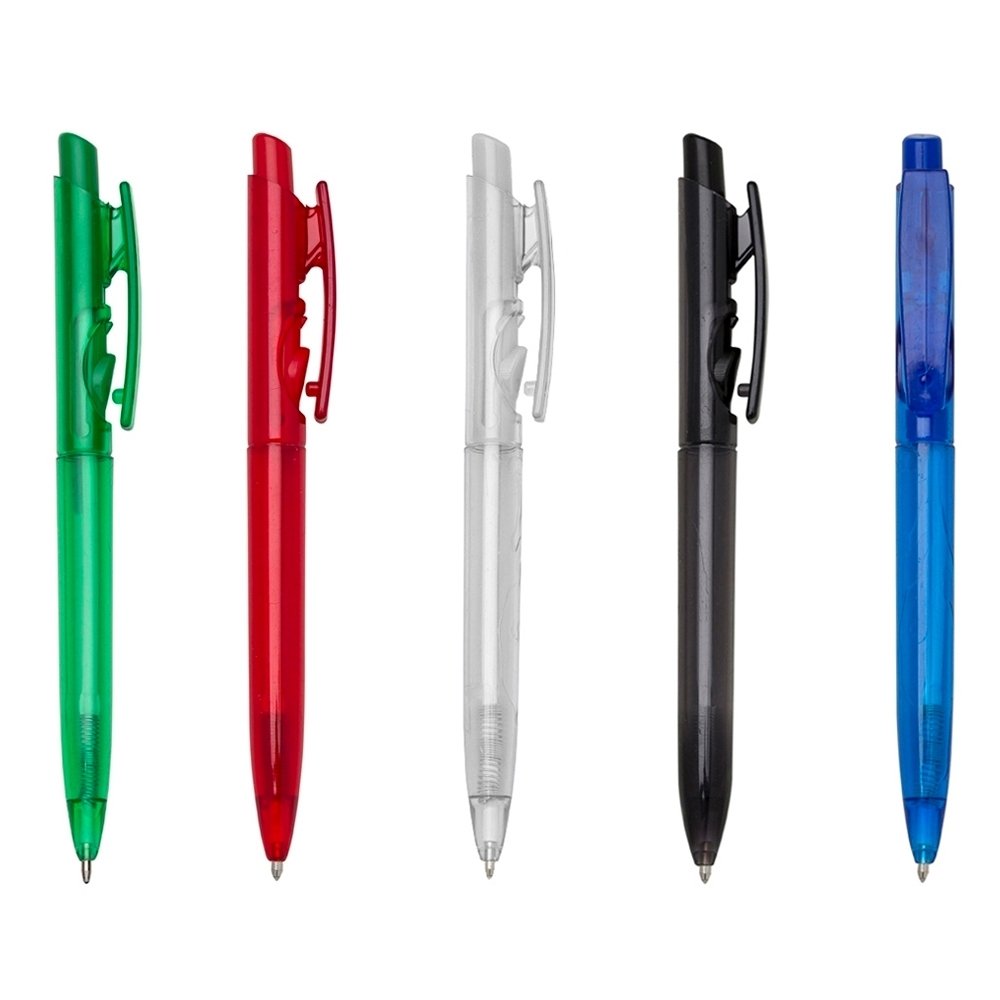 Caneta plástica com carga esferográfica preta 1.0mm e acionamento por clique.