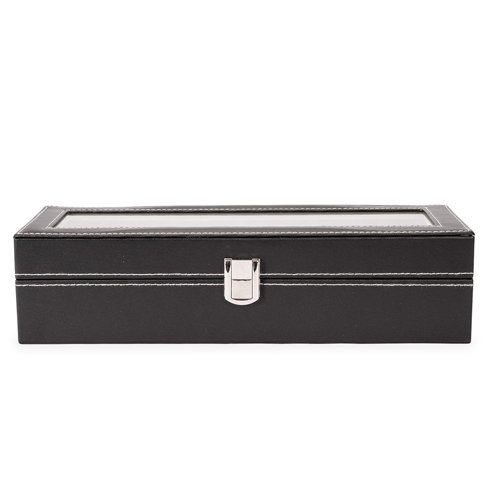 Mantenha seus relógios organizados e protegidos com este porta-relógios com acabamento em couro sintético à base de PVC. Seu revestimento interno em veludo garante maciez e cuidado especial com as peças, enquanto as seis divisórias com almofadas removíveis proporcionam praticidade e versatilidade.